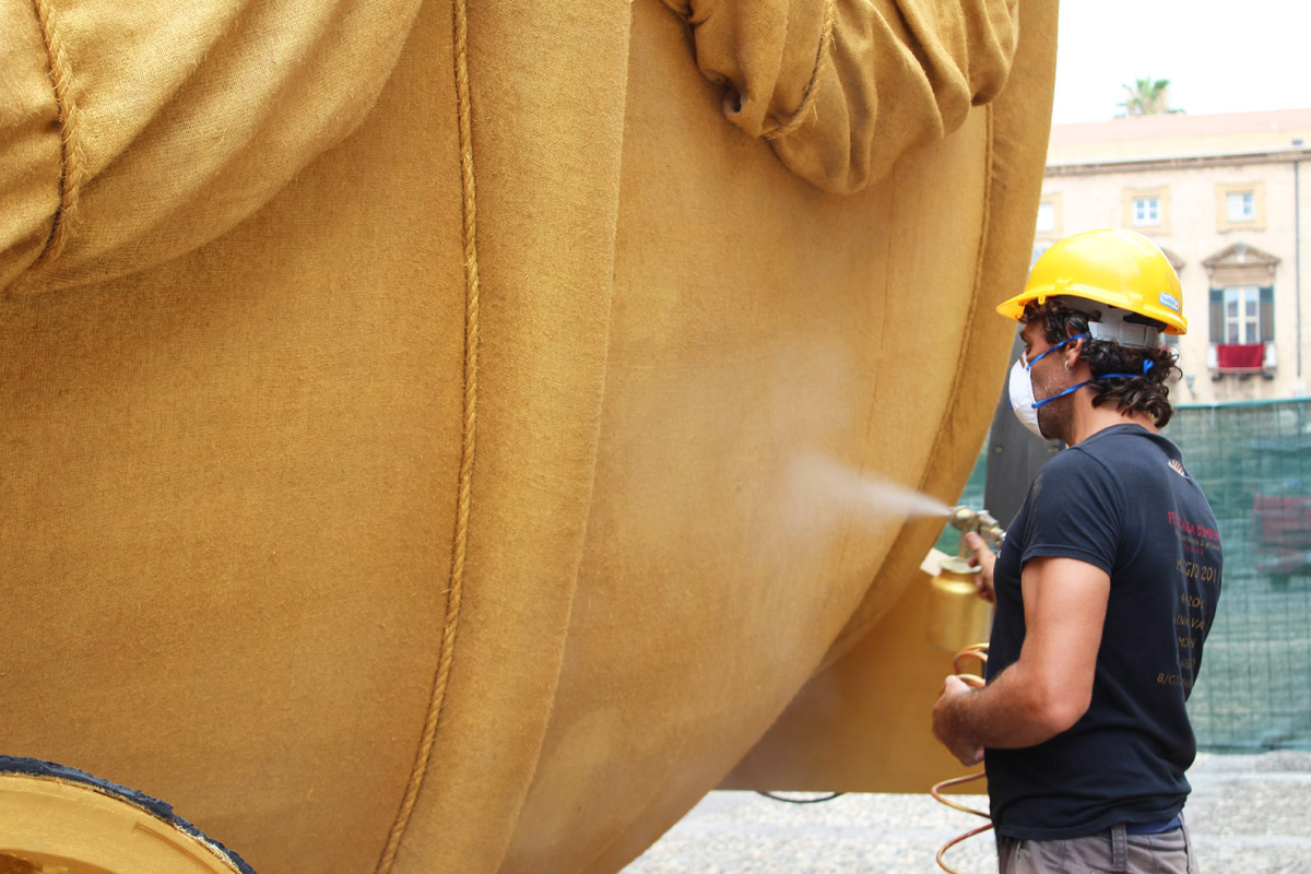della statua di Santa Rosalia e del carro trionfale disegnati da Pausig.