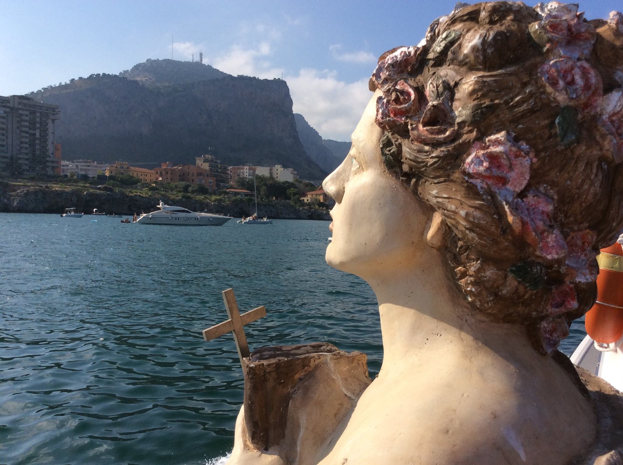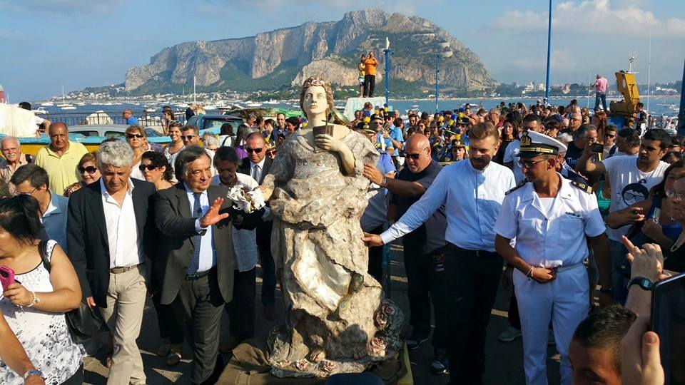 Arrivo della Santuzza dal mare al porticciolo di Mondello, accolta dall' associazione bandistica Città di Palermo -