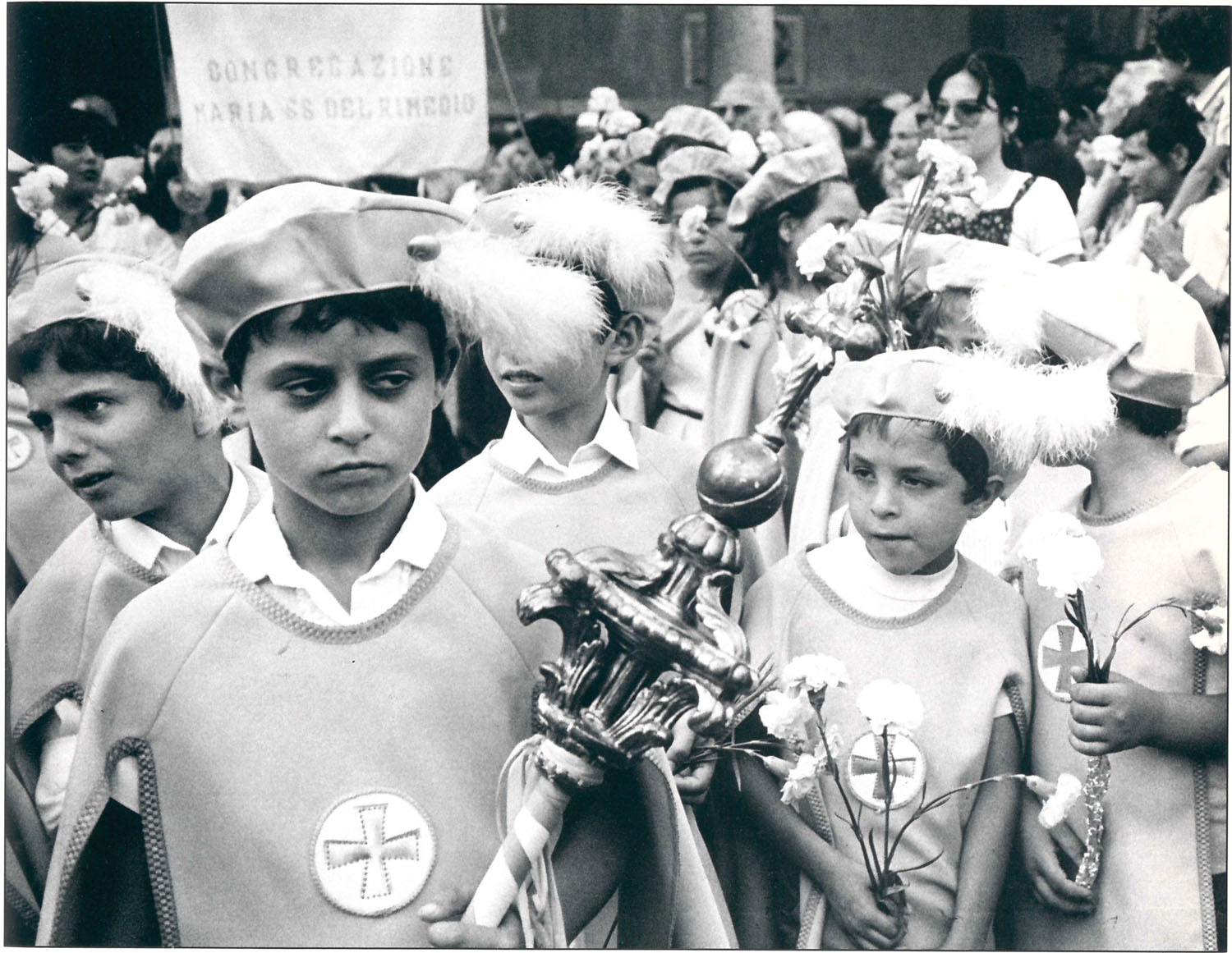 La sera del 14 luglio, invece, l’intero asse principale di Palermo diventa il palcoscenico più grande del mondo e un kilometro di luminarie segna il tragitto del carro trionfale: pittori, scultori, architetti, attori, attrici, trapezisti, danzatori, musicisti, insomma, una vera e propria kermesse d’arte.